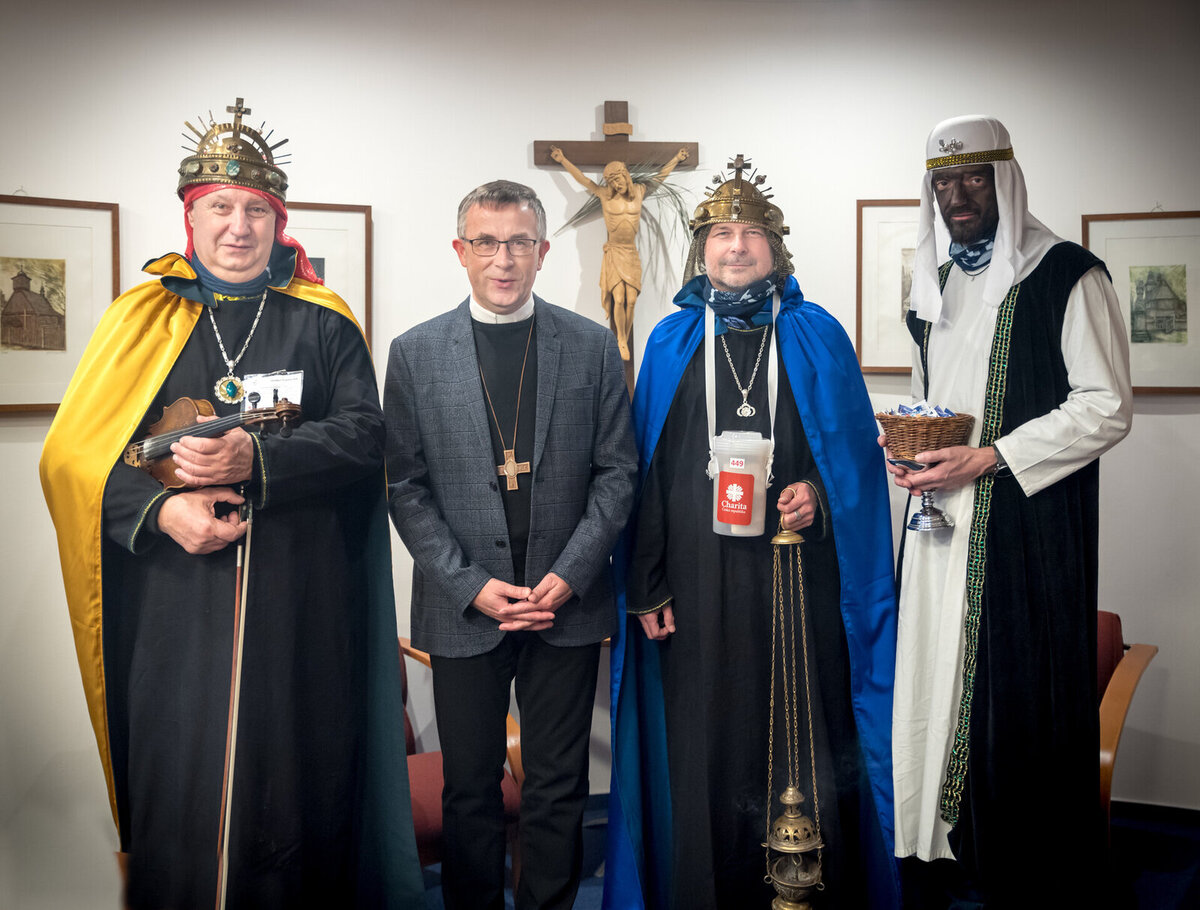 Biskup Martin David vítá tři krále